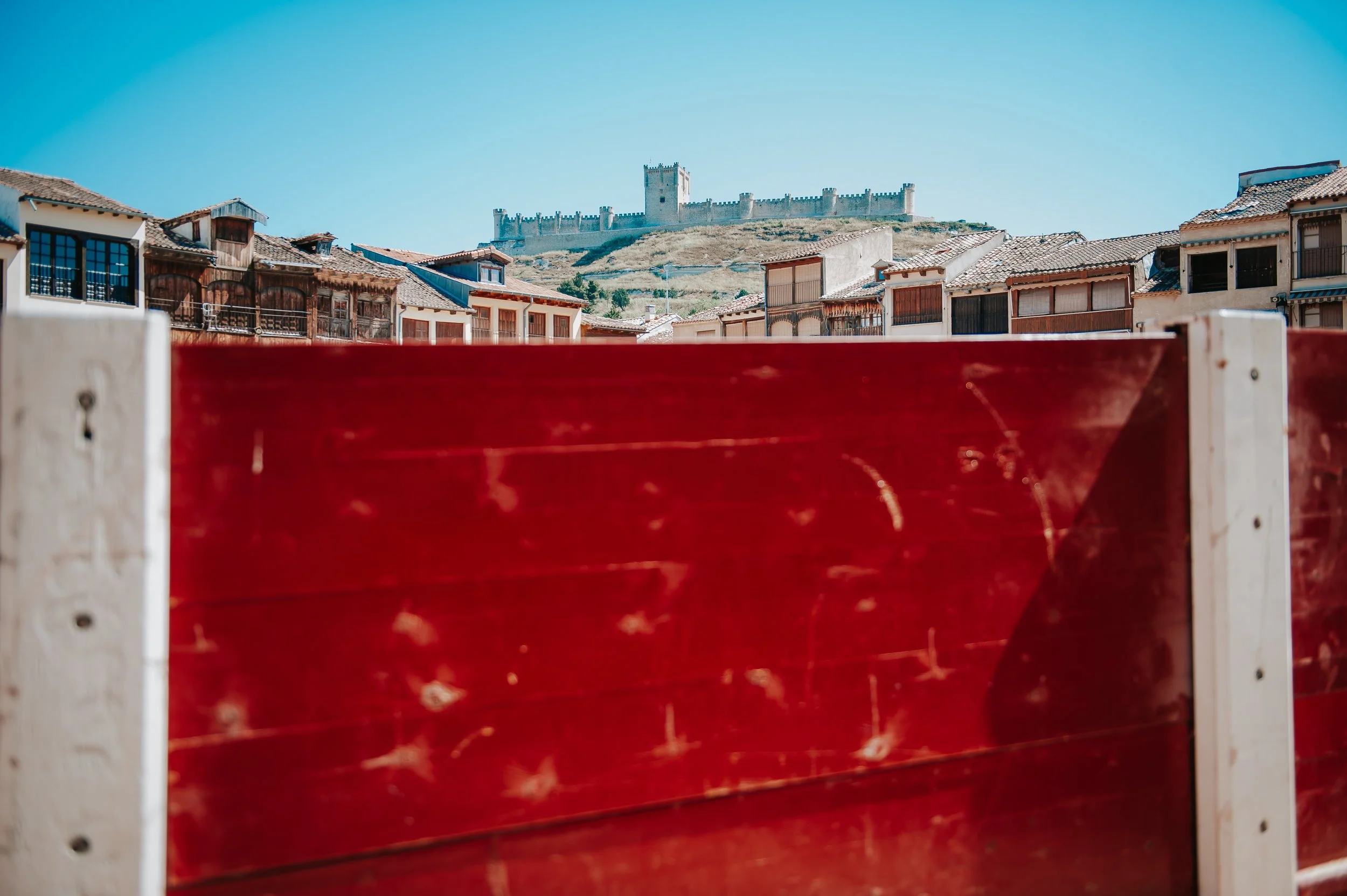 Entre casas de madera y siglos de emoción, la Plaza del Coso es el alma vibrante de Peñafiel: un círculo de historia donde el tiempo aún ruge